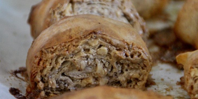 ללא סירופ סוכר, ללא חיתוכים, ללא הינדוסים. מהירה, מגולגלת וטעימה להפליא. באקלוואה עם טחינה גולמית ואגוזים. טבעוניים ממירים את החמאה בשומן אחר מה 4 עלי פילו מופשרים 50 גרם חמאה מומסת 1 כוס אגוזי...